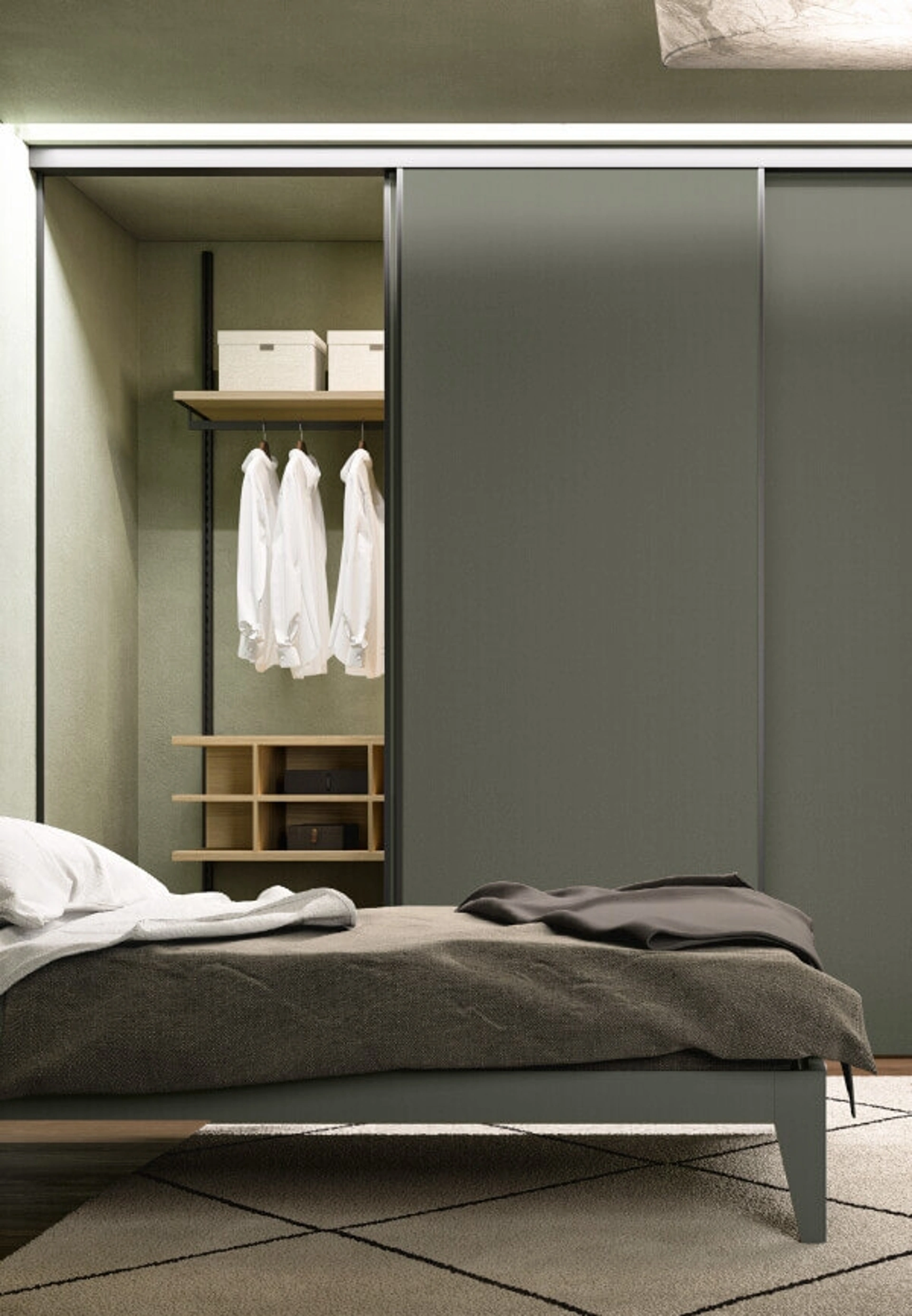 Gli Armadi cabine armadio con ante scorrevoli sono componenti essenziali in camera, per renderla arredata con gusto, pratica e completa di tutto. Contattaci e ottieni informazioni sulla nostra collezione di Arredamento Casa: potrai completare la zona del riposo avendo a disposizione una ampia offerta di mobili contenitori moderni, come l'armadio in melaminico nella fotografia. Per arredare al meglio una stanza bella e funzionale, scegli le più originali soluzioni dei migliori brand, letti, armadi e comò di alto contenuto estetico.