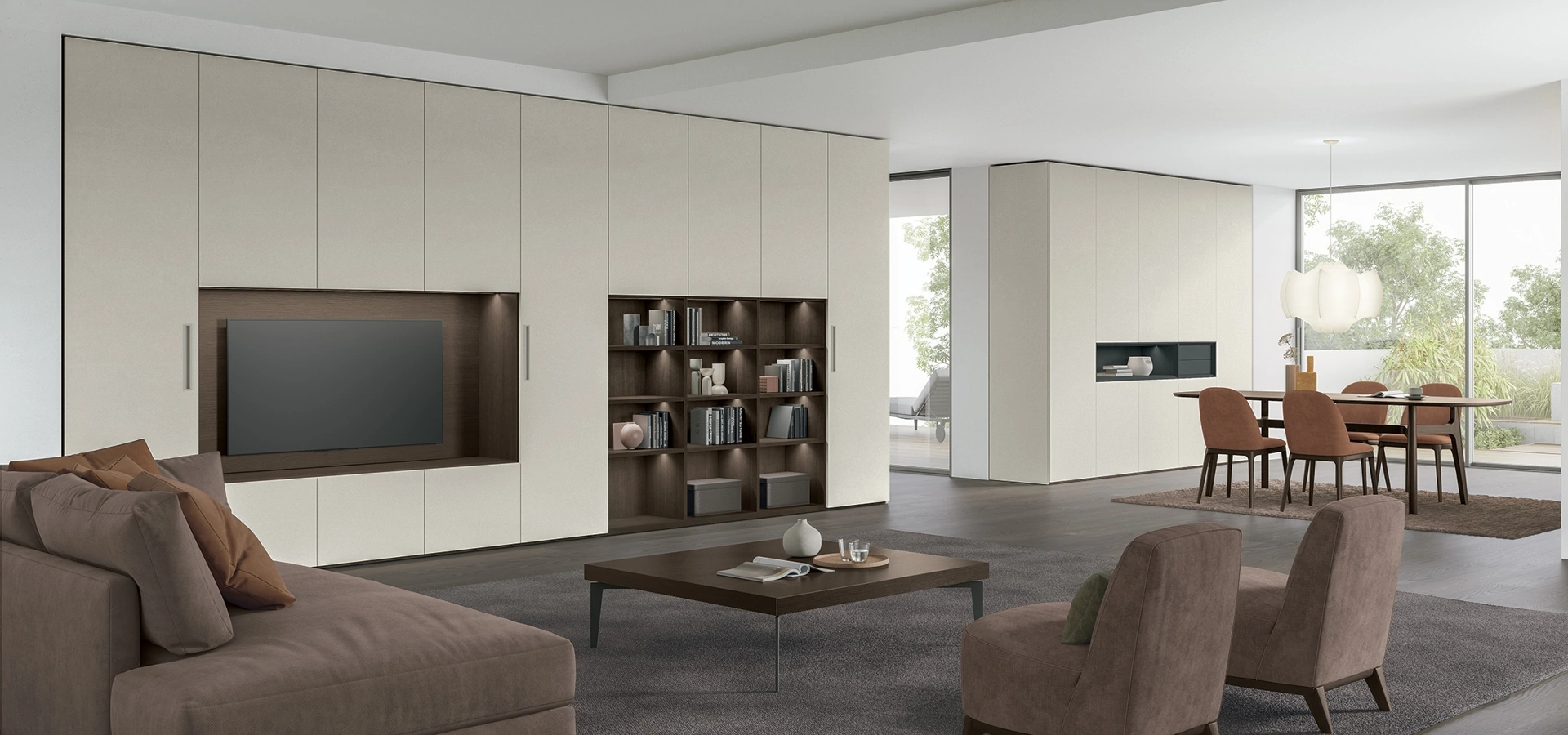 I mobili soggiorno in melaminico dalle linee moderne come il modello nella fotografia sono davvero poliedrici e capaci di arredare il soggiorno sfruttando bene ogni angolo. Lasciati stuzzicare da una ricca gamma di mobili per la zona giorno e troverai la parete attrezzata che fa al caso tuo. La Parete Attrezzata Logica Plus UNIT 01 di Tomasella nella fotografia è una tra le più belle soluzioni d’arredo in commercio: massima componibilità e le diverse opportunità di progettazione la rendono bella e funzionale. Tomasella mette a disposizione inediti modelli di mobili soggiorno, diversi per stile e forme, finiture e accessori: scopri nel nostro showroom l'Arredamento Casa dei migliori produttori.
