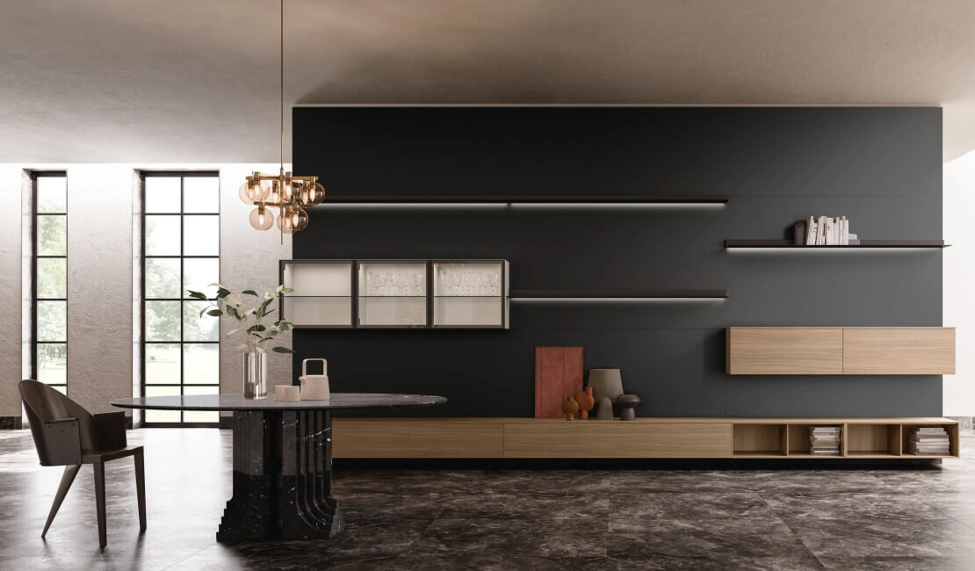 Un po’ librerie, un po’ mobili contenitori ed espositori: le Pareti Attrezzate sono ideali per sistemare uno spazio pratico e operativo. Anche in un soggiorno non troppo grande, questo tipo di arredo riesce a organizzare al meglio gli spazi ottimizzando ogni angolo e garantendo massima componibilità tipica delle soluzioni moderne. Se cerchi arredi salvaspazio e realizzabili su misura per te, contattaci e ottieni informazioni sull'Arredamento Casa delle migliori marche. La Parete Attrezzata SpaceMakers day SM2225 di Zalf in foto, con finitura in melaminico, risolve le più personali problematiche abitative di spazio e stile senza rinunciare alla ricerca estetica.